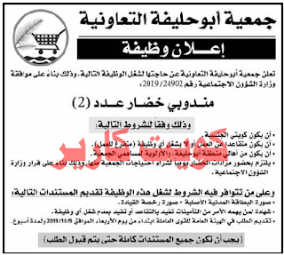 فرص عمل خالية في دولة الكويت عن صحافة الاثنين 7 اكتوبر 2019